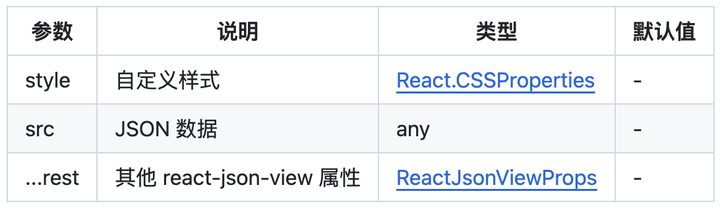 JSON 数据展示组件,用于格式化展示 JSON 数据。 本项目 JSON 数据采用react-json-view库渲染,API 保持一致,详细属性可参考其官方文档。