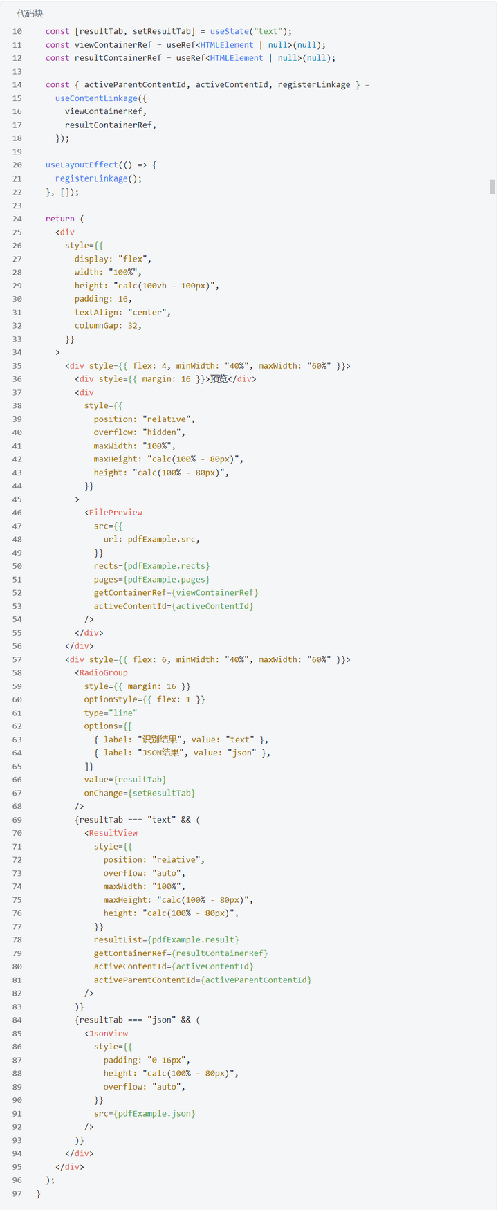 TextIn OCR Frontend 是一个用于展示 Textin 识别结果的 React 组件库,支持文件预览、坐标回显和结果展示。