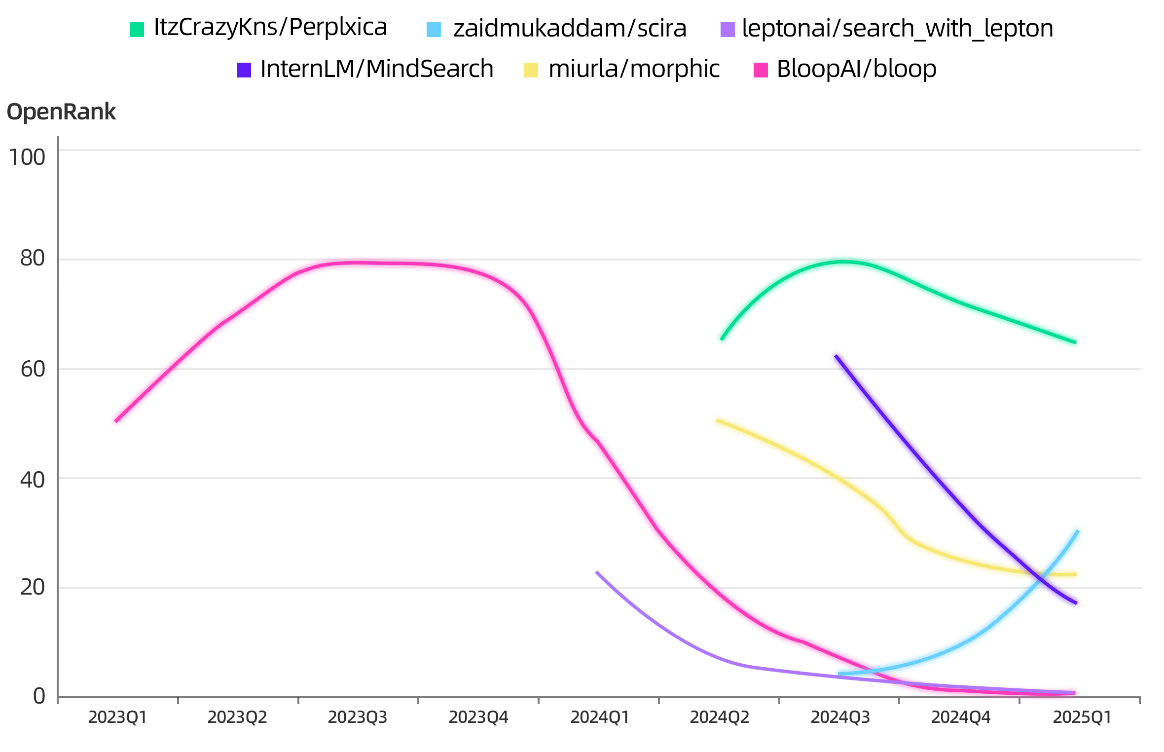 AI Search 开源项目们的 OpenRank 趋势