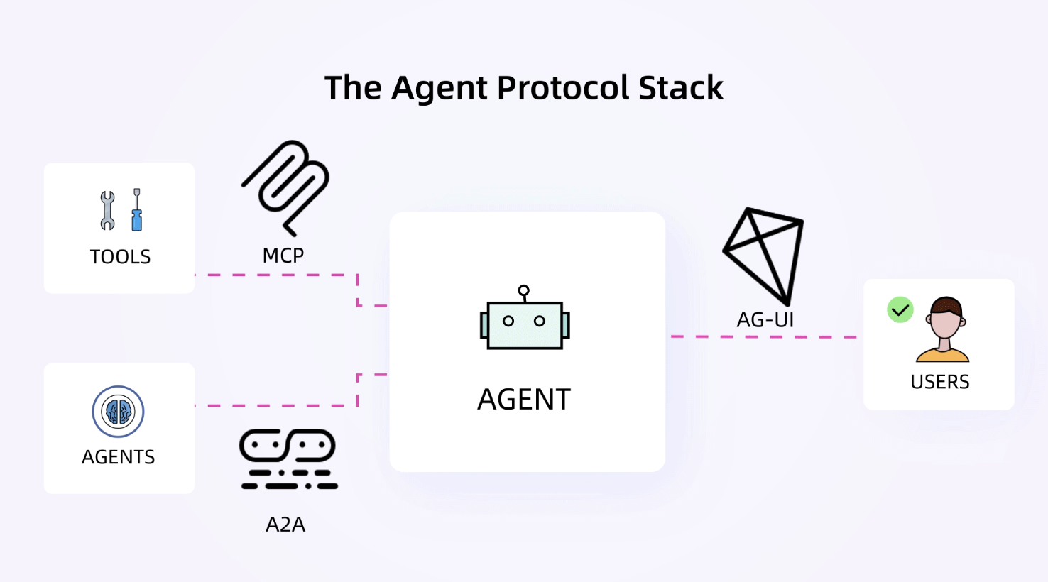 2025 年 5 月,CopilotKit 推出智能体用户交互(Agent-User Interaction,AG-UI)协议。推出仅一周,仓库涨星 2.2K,该协议用于标准化智能体后端调用的工具和前端用户界面之间的交互层。