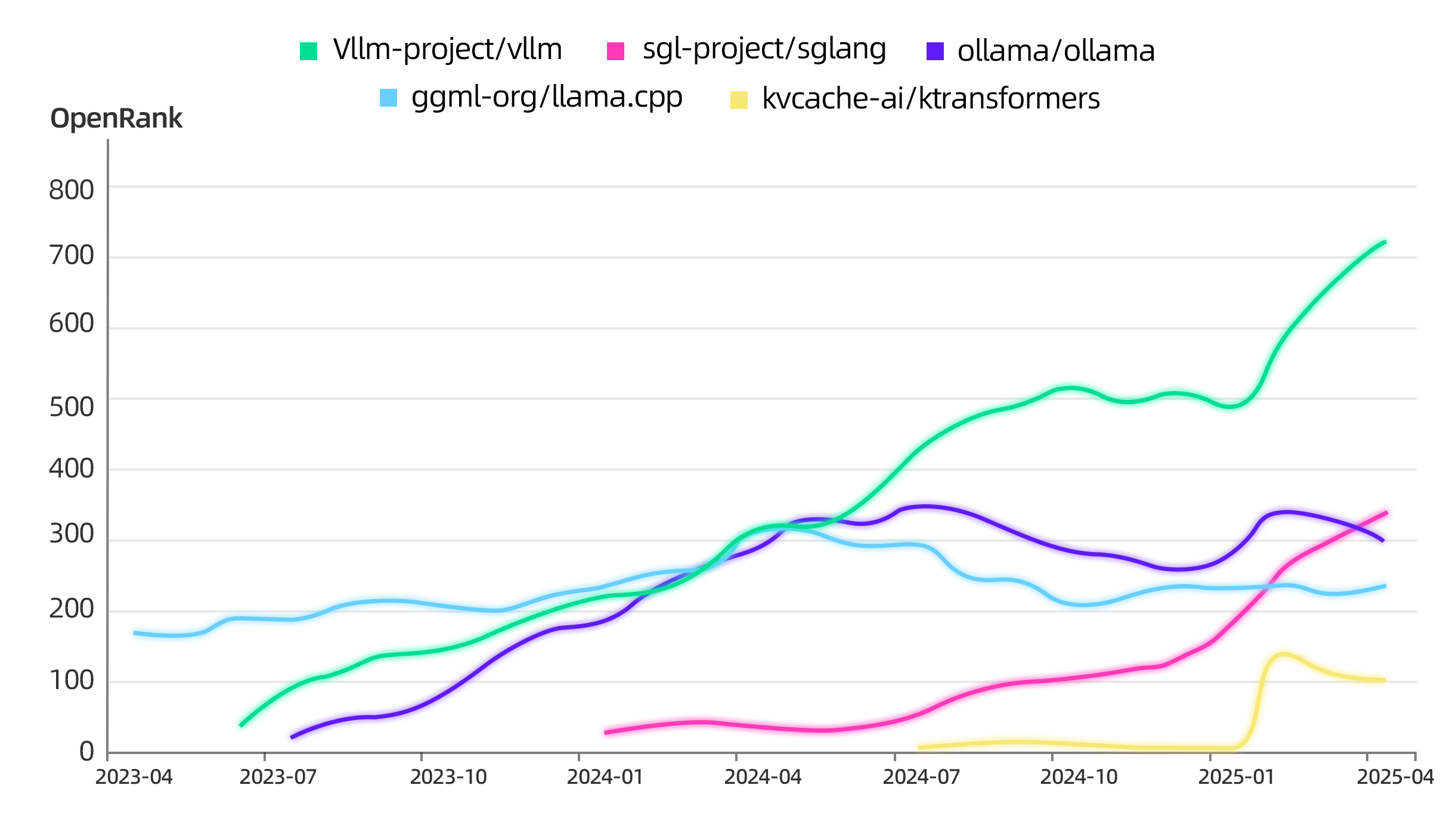几大模型服务项目的 OpenRank 曲线变化