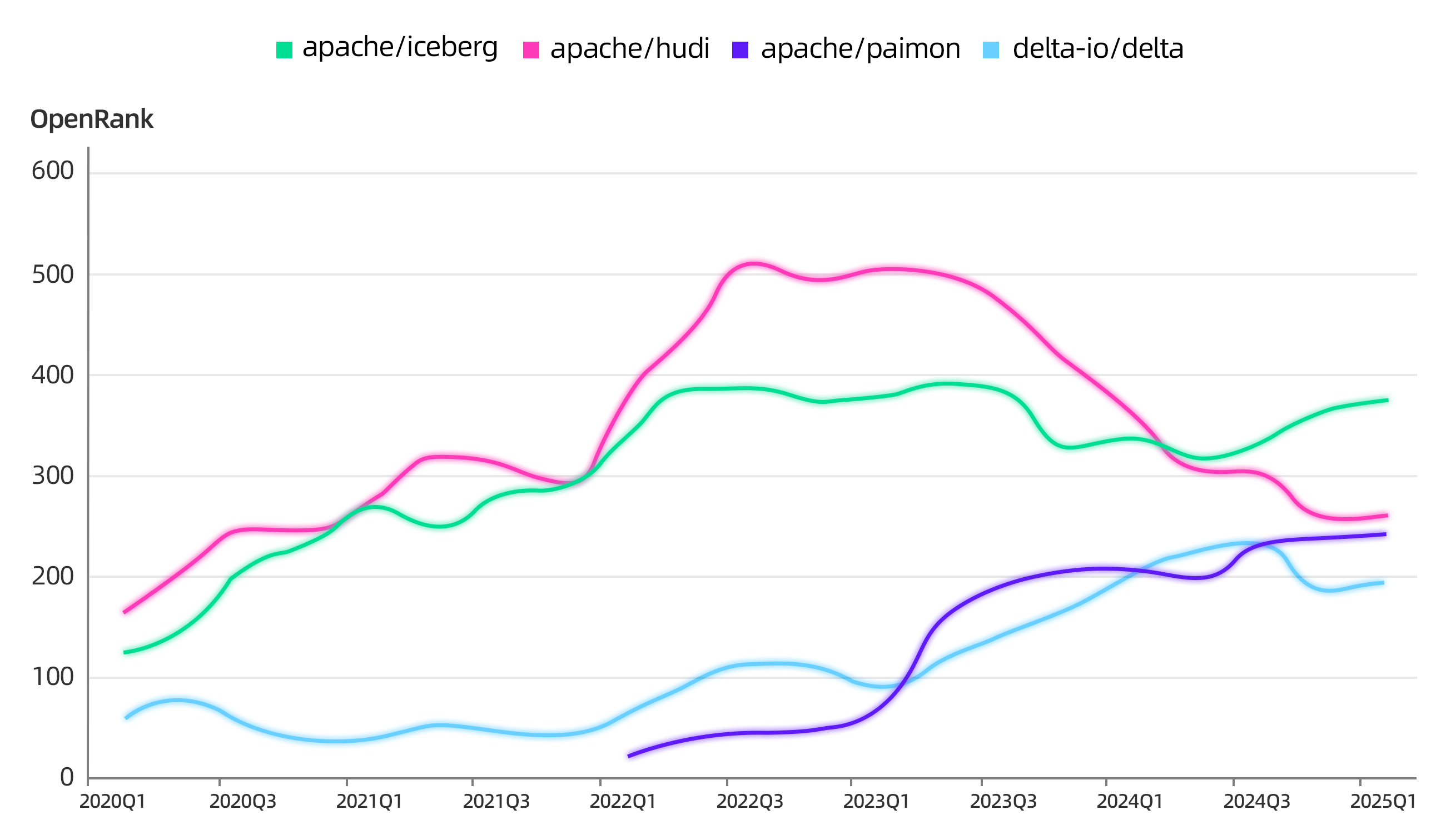 数据湖表格式项目 OpenRank 曲线变化
