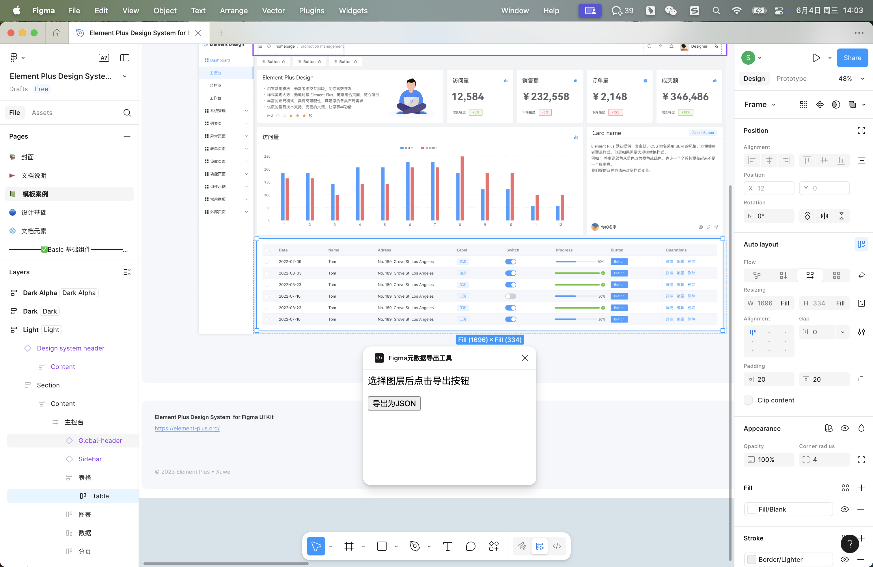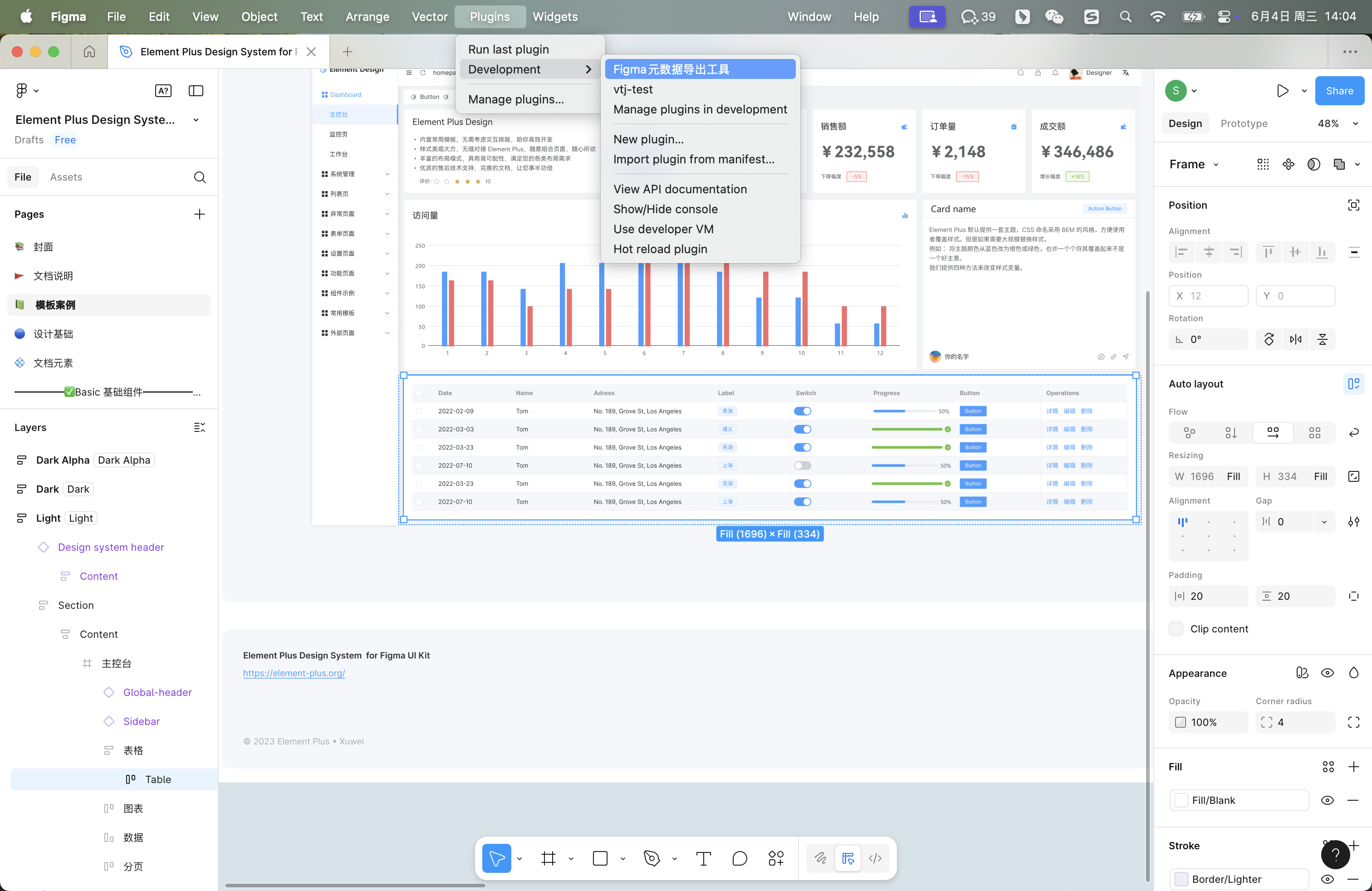 文件完成安装打开 Figma客户端,选中您需要导出的图层,点击菜单 Plugins > Development > Figma元数据导出工具