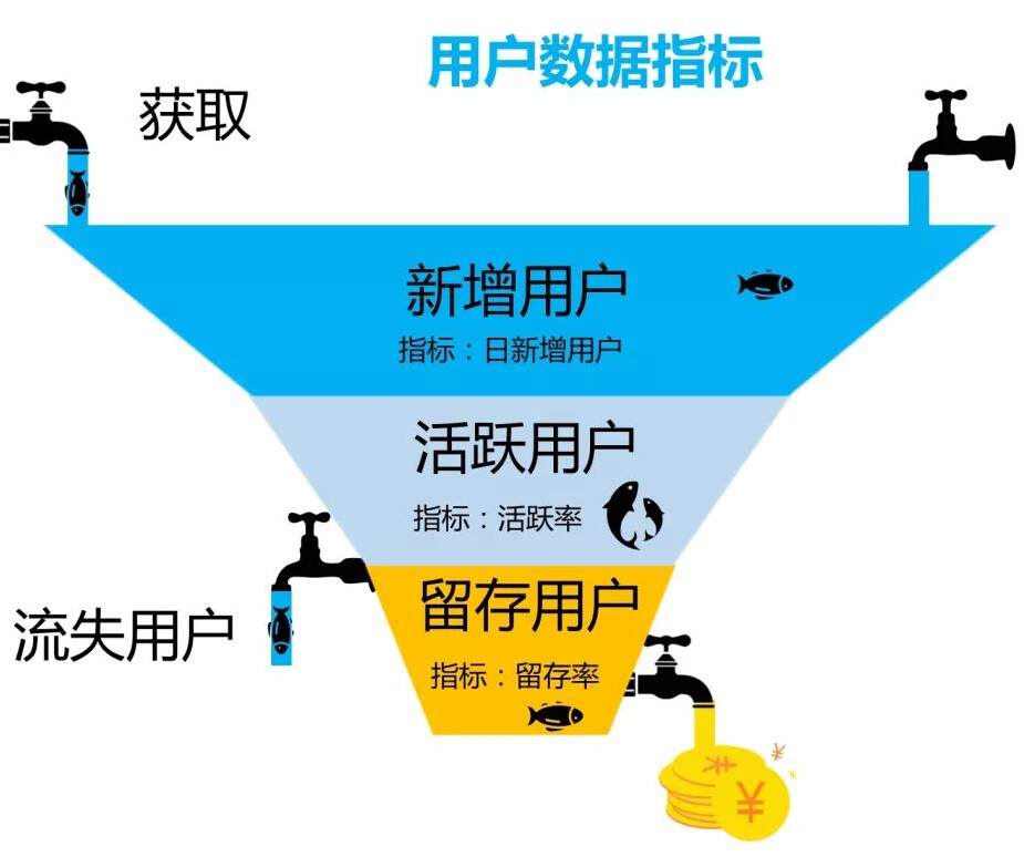 我们可以通过鱼塘来表达,衡量用户行为的数据指标就是决定成败的渔网: