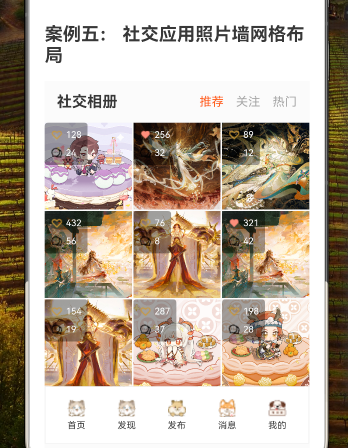 以下是社交应用照片墙网格布局的完整代码: