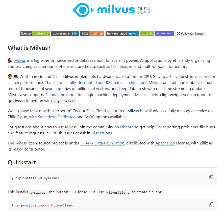通过此次更新,Milvus进一步推动了向量数据库产业的技术成熟和生态完善,为更多中大型企业及开发团队提供了可靠的技术保障,也在激烈的开源数据库市场中稳固自身头部位置。