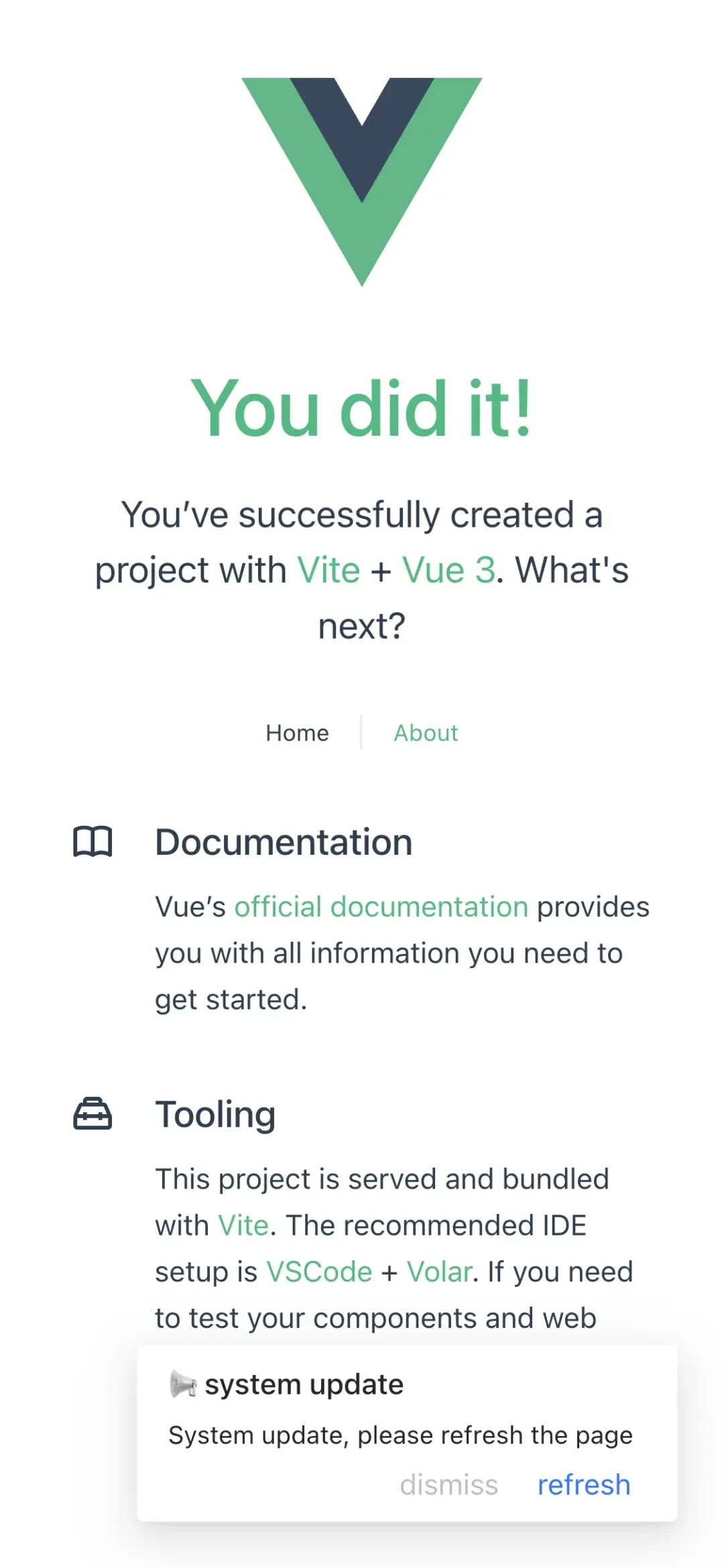 检测网页更新并通知用户刷新页面,支持 Vite、Umijs 和 Webpack,使用版本号(如 git commit hash)进行比较。