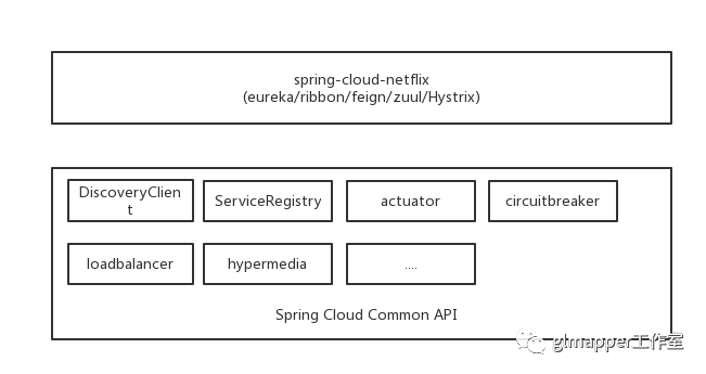 spring-cloud-commons 模块是 spring在分布式领域上(服务发现,服务注册,断路器,负载均衡)的规范定义。spring-cloud-netflix 是基于此规范的具体实现,Netflix OSS 里的各种组件也都实现了这个 commons 规范。关系如下: