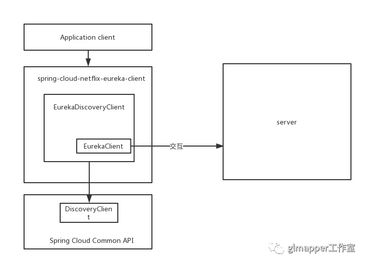 EurekaDiscoveryClient 中实现了这几个方法,但是 EurekaDiscoveryClient 自身没有实现如何与服务端交互的逻辑,而是通过 com.netflix.DiscoveryClient 类来完成。所以 spring-cloud-netflix-eureka-client 干的事情就是实现了 Spring Cloud Common 规范,然后在实现上包装了 netflix 。