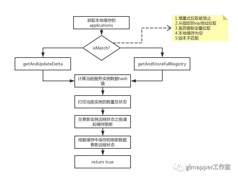 fetchRegistry(boolean)是从 eureka server 拉取注册信息的方法,参数用于表示是否是强制拉取全量的注册信息;此方法除非在协调eureka服务器和客户端注册表信息方面存在问题,否则此方法只尝试在第一次进行全量获取,后面均是增量获取。