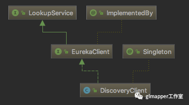 EurekaClient 也是一个接口,集成并且扩展了 LookupService。