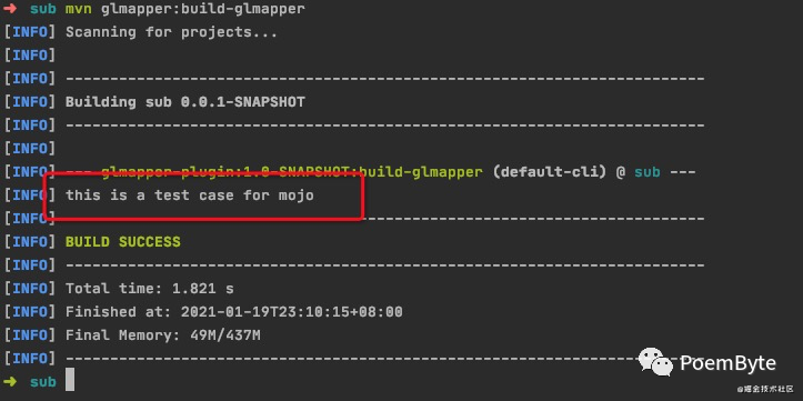 这里有个小细节,就是执行插件的阶段,比如我们的插件名字是 glmapper-plugin,但是实际上执行时使用的是 glmapper,也就是当插件名满足:xxx-maven-plugin