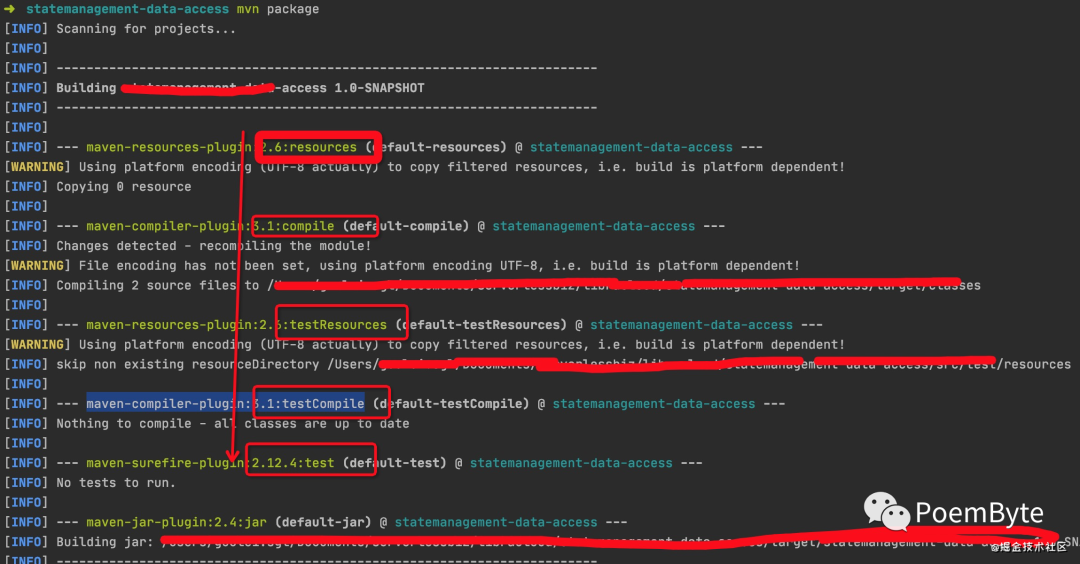 可以看到,compile、test 等比较靠前的阶段也都被执行了。
