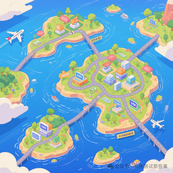此外,虽然业务系统逐渐迁移到了K8S,需要提供相应的开发测试环境, 但是前端、中间件、数据库以及部分系统还都未容器化。在开发测试环境,后面这些系统还依旧以VM的形式存在,继续使用着模板机服务。因此,一套完整的环境就需要整合大几十个在K8S中的微服务以及其它在一个或者多个VM中的系统,彼此之间还需要按照线上系统网络区域隔离的要求进行通信(某个namespace模拟某个网络区域,类似一个海洋上的群岛。多个群岛之间的点对点(envoy网关)飞机航线,群岛内部水路交通(直连)。复杂度又一次提升了。