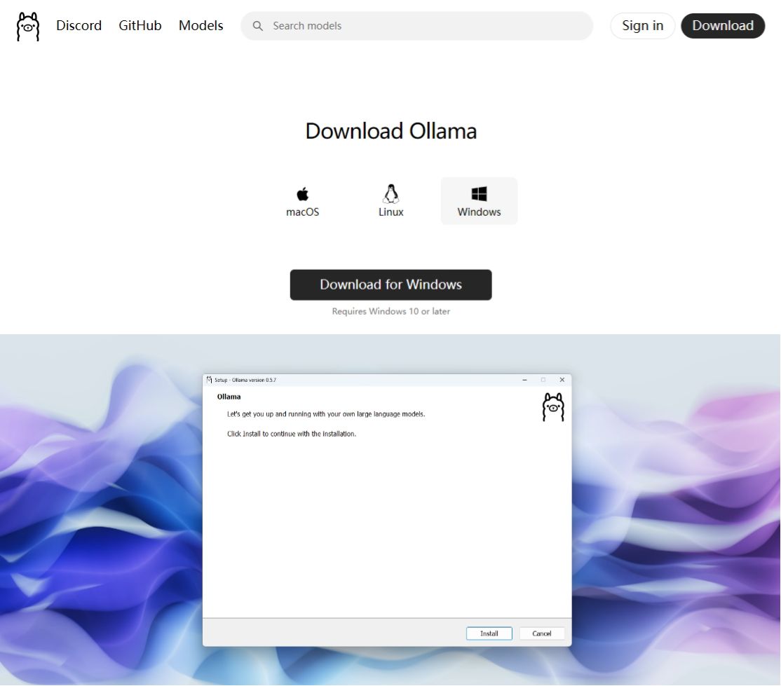 首先,访问Ollama官网,下载并一键安装Ollama客户端。
