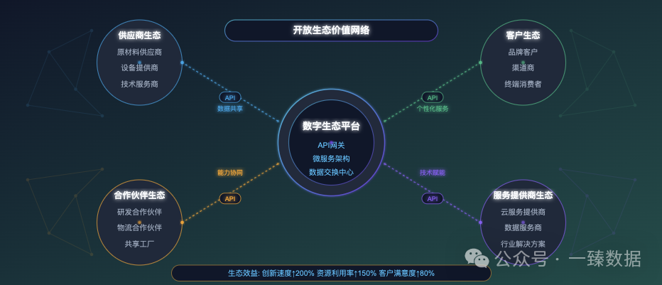 在生态化阶段,企业的竞争力不再仅仅来自内部资源,而是来自整个生态网络的共创能力。据麦肯锡研究,构建成熟数字生态的企业,其创新速度是传统企业的3-5倍,资源利用率提升150%以上。