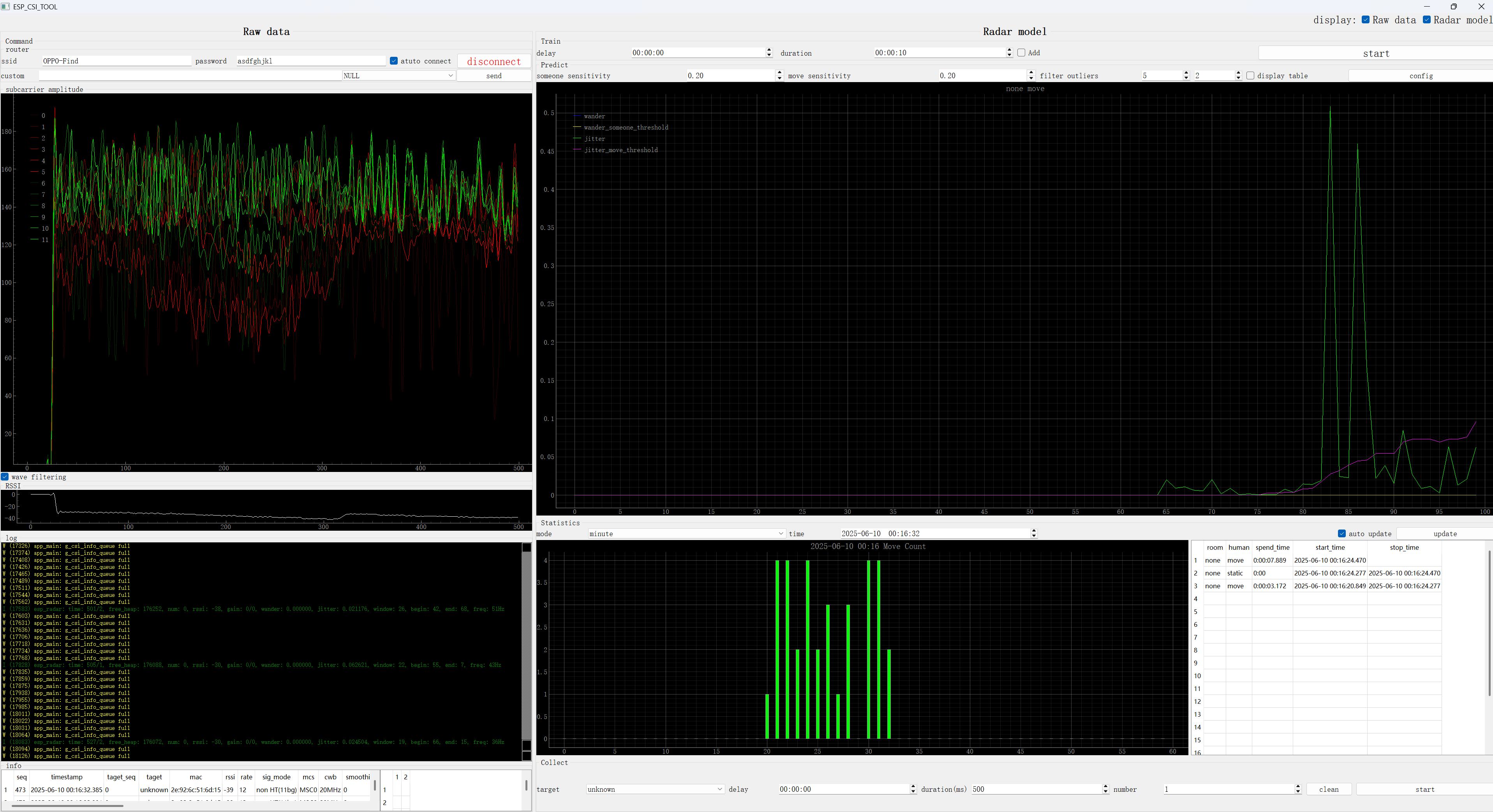 该窗口用于收集人们在进行不同动作时的CSI数据,收集到的数据会存储在 路径下esp-csi/examples/console_test/tools/data,收集到的数据可以用于机器学习或者神经网络。