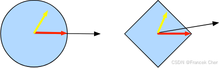 投影的数学定义听起来可能有点抽象,为了解释得更清楚一些,请看图4。图中有两个凸集,一个圆和一个菱形。两个集合内的点(黄色)在投影期间保持不变。两个集合(黑色)之外的点投影到集合中接近原始点(黑色)的点(红色)。虽然对