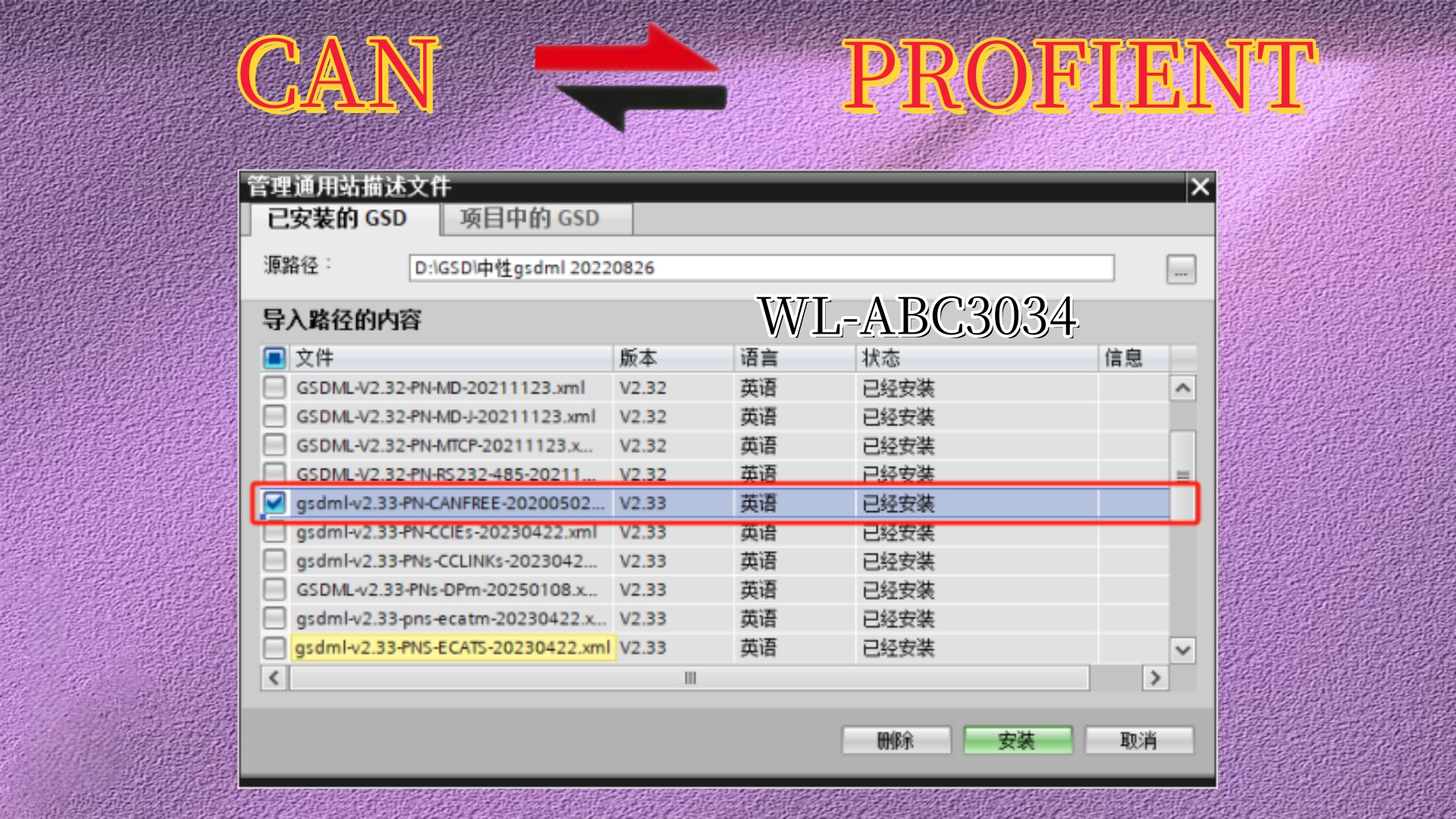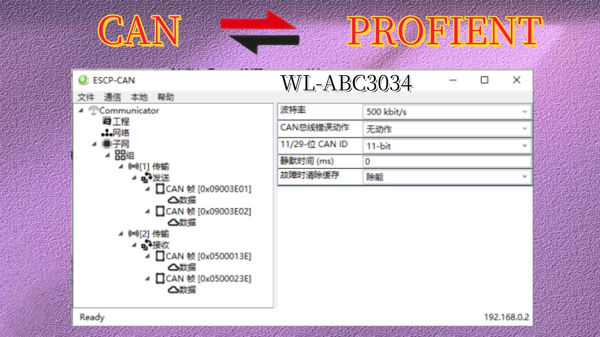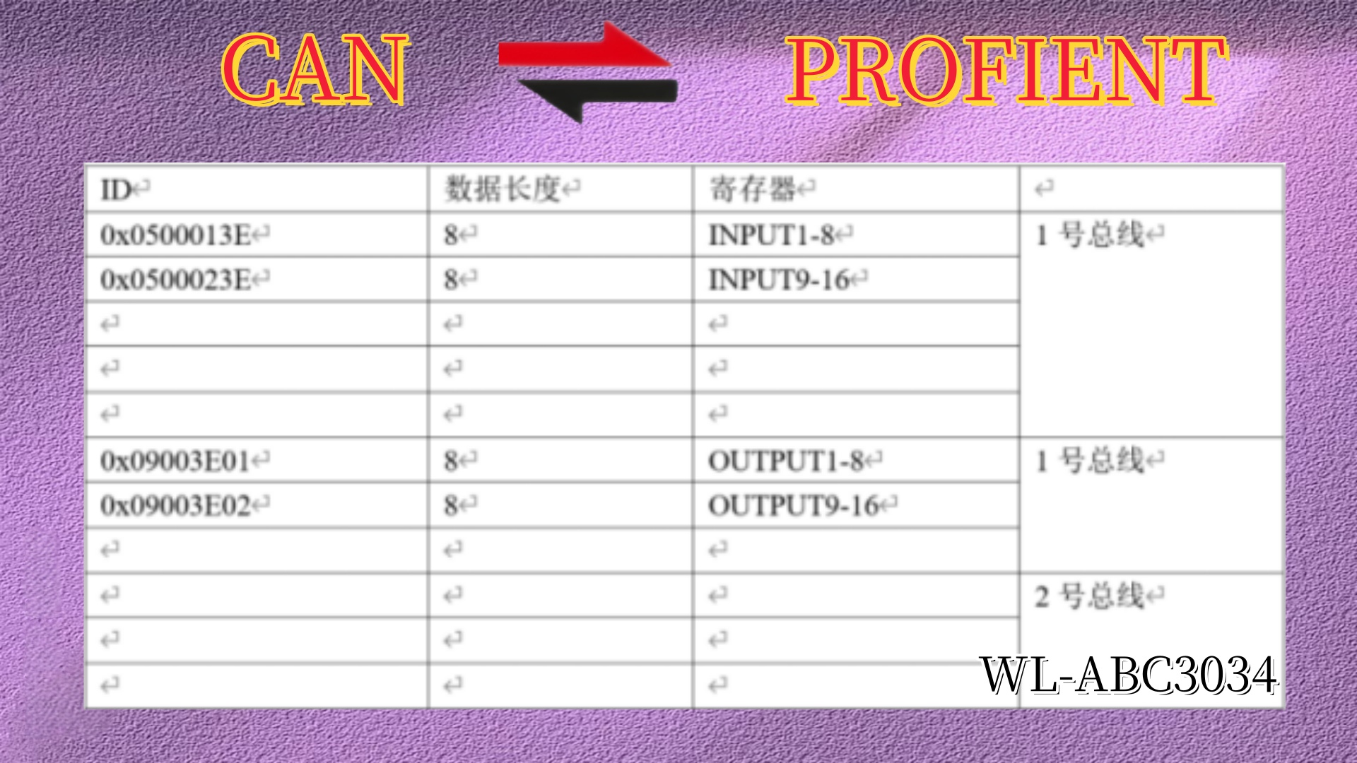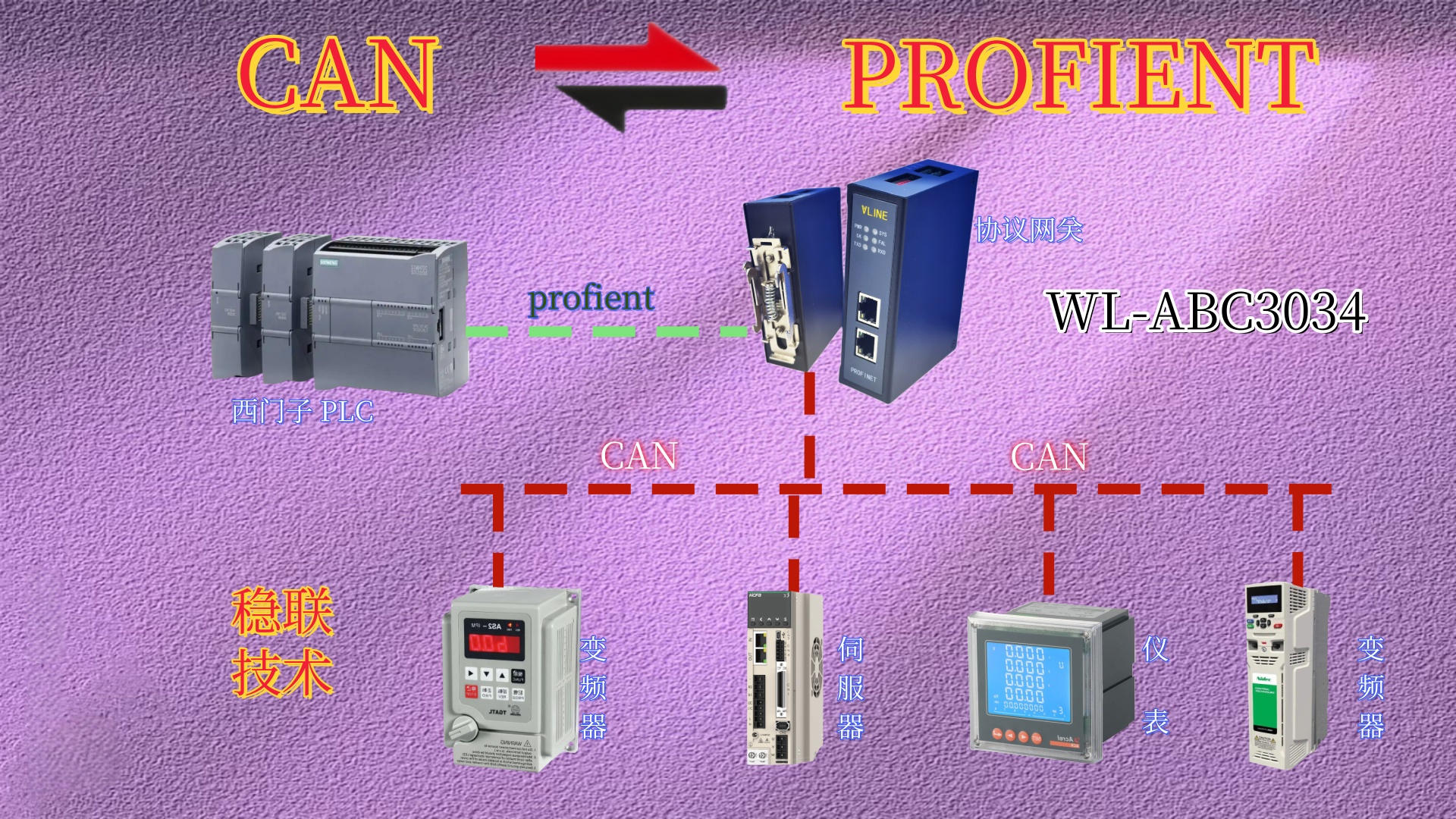 为应对CAN设备接入ProFiNet网络的技术困境,有必要引入一款第三方设备。此设备能够轻松地把各类CAN设备接入PROFINET网络,达成设备之间高效、稳定的通信。并且,该产品支持依据节点号开展读写操作,使操作更为简便易行。WL - ABC3034网关模块以从站形式接入PROFINET总线,同时在CAN总线中依据节点号进行读写操作。