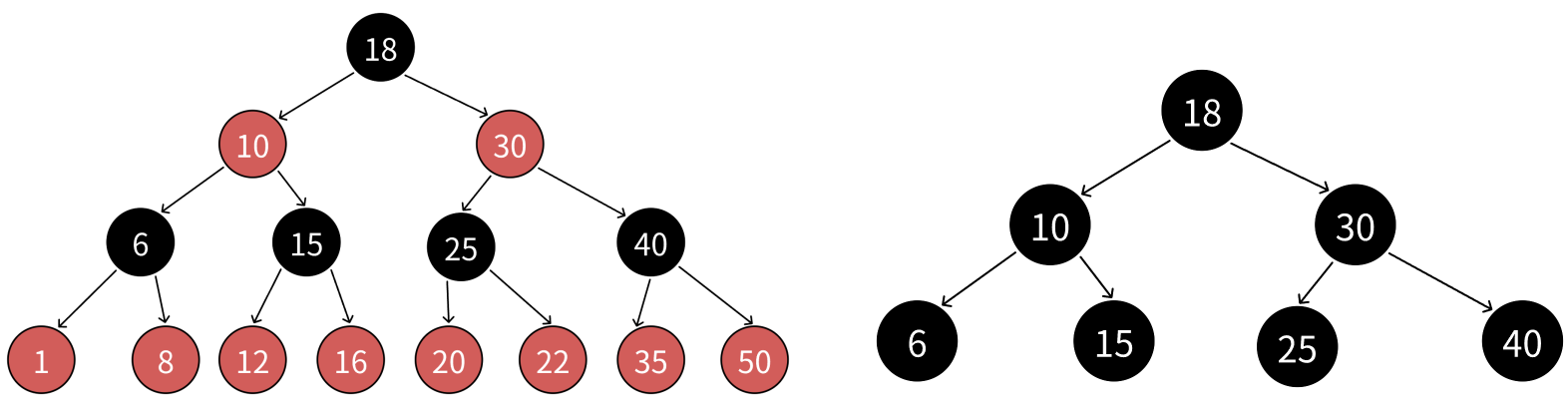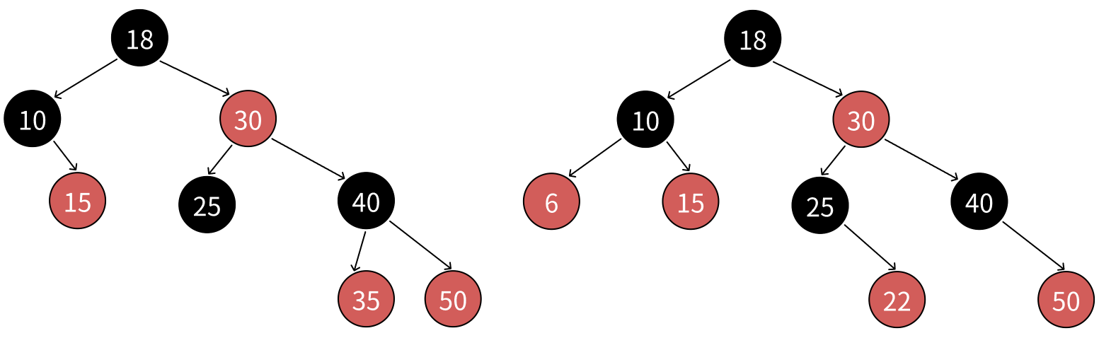 上图就是两颗红黑树,还有非常均衡的满二叉树红黑树,也有全黑的,都是符合规则的红黑树。