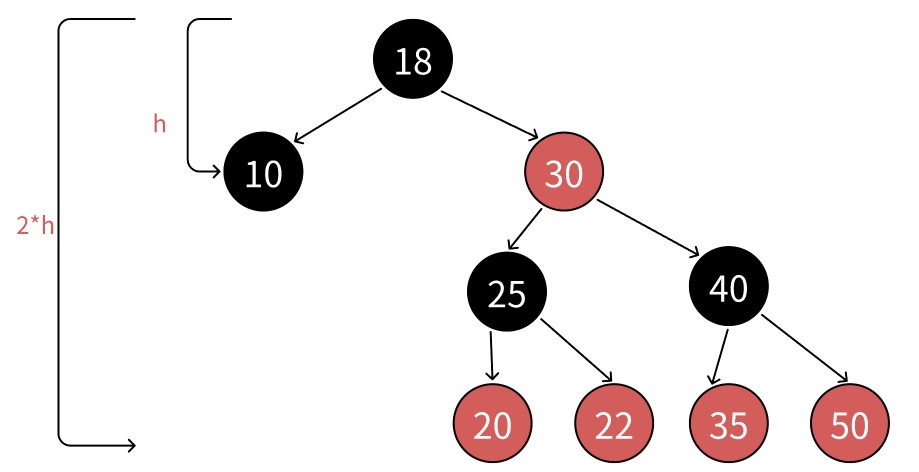 }红黑树要求最长路径不超过最短路径的2倍,我们只需去检查4点规则,如果满⾜这4点规则,就⼀定能保证最⻓路径不超过最短路径的2倍。