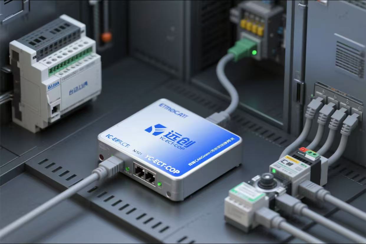 在高速发展的锂电储能行业,某大型储能系统集成企业的生产车间面临着通信协议不统一的难题。车间内的核心运动控制系统采用西门子S7-1500系列PLC作为EtherCAT协议主站,用于实现对电池组装、焊接等精密工序的高速控制;而部分传感器(如温度、压力传感器)以及伺服电机驱动器采用CANopen协议。为打造高度自动化、智能化的储能电池生产线,实现不同协议设备间的数据交互与协同控制,引入远创智控YC-ECT-COP协议转换网关势在必行。