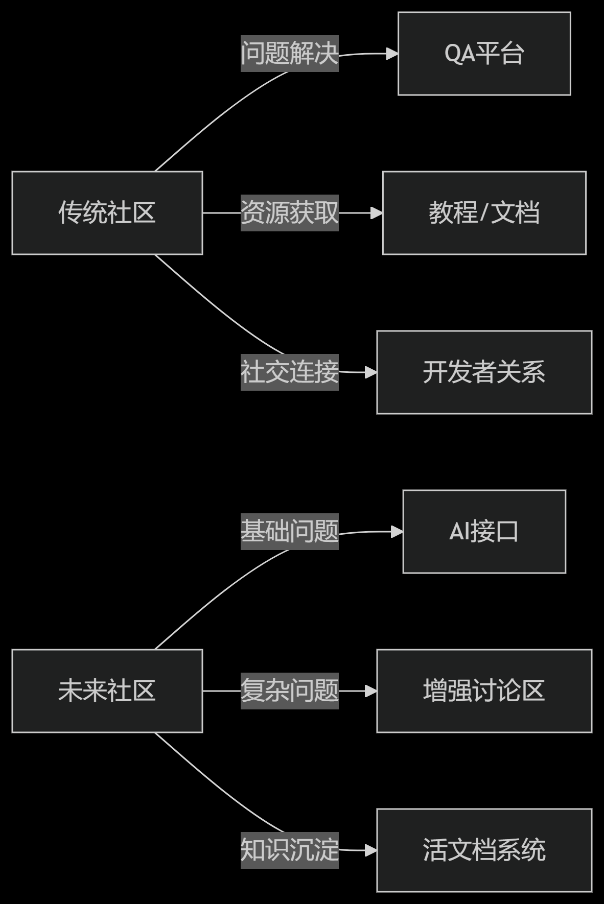AI编程工具与技术社区的关系,不是替代而是共生。正如IDE没有消灭编程书籍,云计算没有终结本地开发环境一样,AI将成为开发者工具箱中的新成员,而技术社区将继续作为知识验证、经验分享和思想碰撞的核心场域。卓伊凡预见,未来的技术互动生态将是”AI处理模式,人类把握本质;AI提供选项,人类做出决策”的协作格局。在这种格局下,那些既能高效利用AI工具,又深谙社区智慧价值的开发者,将获得最大的竞争优势。