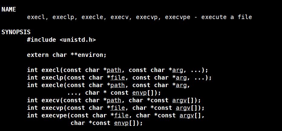exec系列的函数,他们的核心逻辑是一样的,但各参数不同,原因是为满足在不同的使用场景下的使用需求。