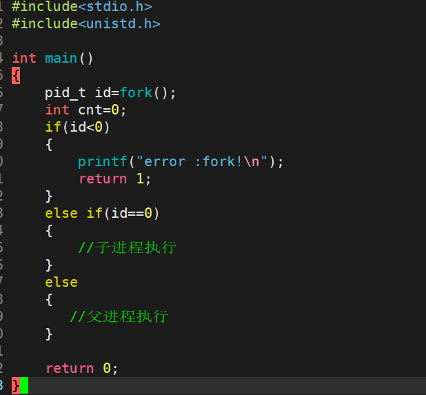 ①是想让子进程执行父进程代码的一部分,比如同时运行父进程的if -else if 条件语句: