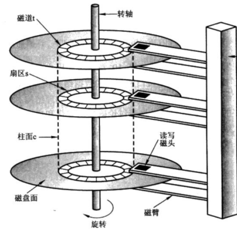 3)柱面:将一摞磁盘的同心磁道宏观上看作一个柱体,按磁道的的半径不同,一摞磁盘中柱面的个数与磁道个数相等。故柱面的本质就是磁道。