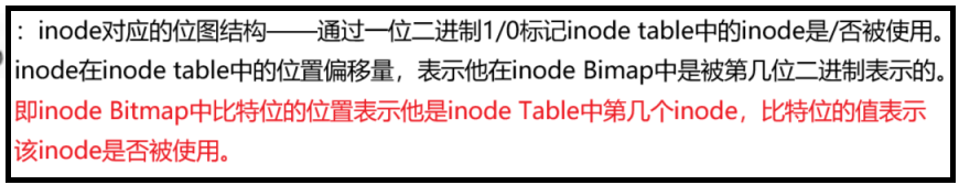 操作系统首先是通过inode Bitmap查看该inode是否存在(是否被使用),若存在则再通过inode Table找到inode并再次核对id是否正确,若上述两项都无误,那该inode中记录的文件属性即目标文件的文件属性。