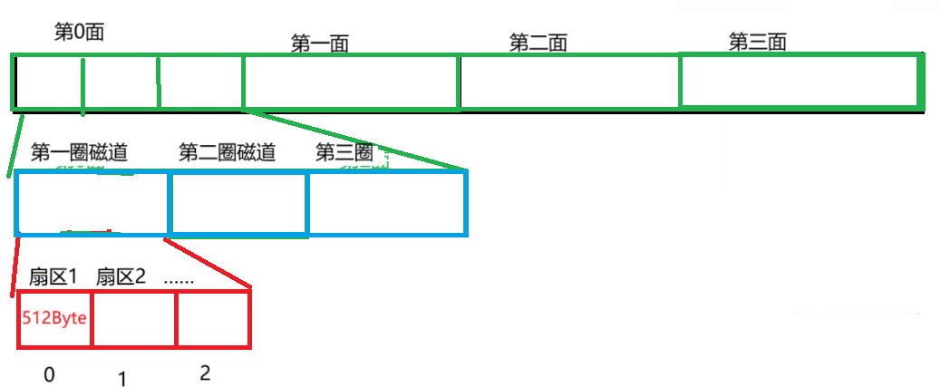 那么综上述步骤,我们可以得出123号地址在该磁盘的第0面,第1号磁道的第23号扇区。