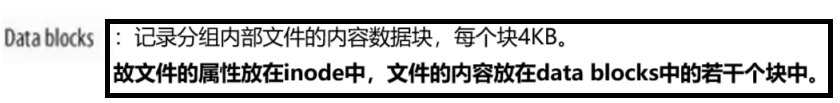 文件内容:文件内容存储在数据块(即下面介绍的date blocks)中,inode 仅通过指针记录数据块位置。