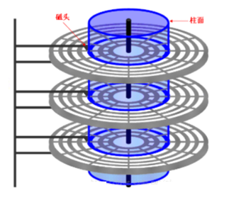 现实中磁盘通常是一摞存放的,磁盘通过电机驱动不停旋转,而磁头也是通过电机在来回抖动。一摞磁盘上的磁头都是通过同一个电机驱动,所以每个磁头都是共进退,通过引入柱面来方便实际描述数据在哪里,比如数据在哪个柱面的哪个盘面的哪个扇区。