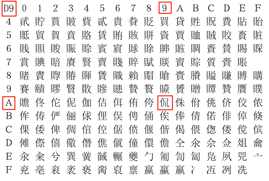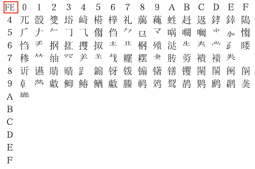 的范围了。次字节从0x40开始也是为了避开控制字符(兼容ASCIl和扩展字符)
