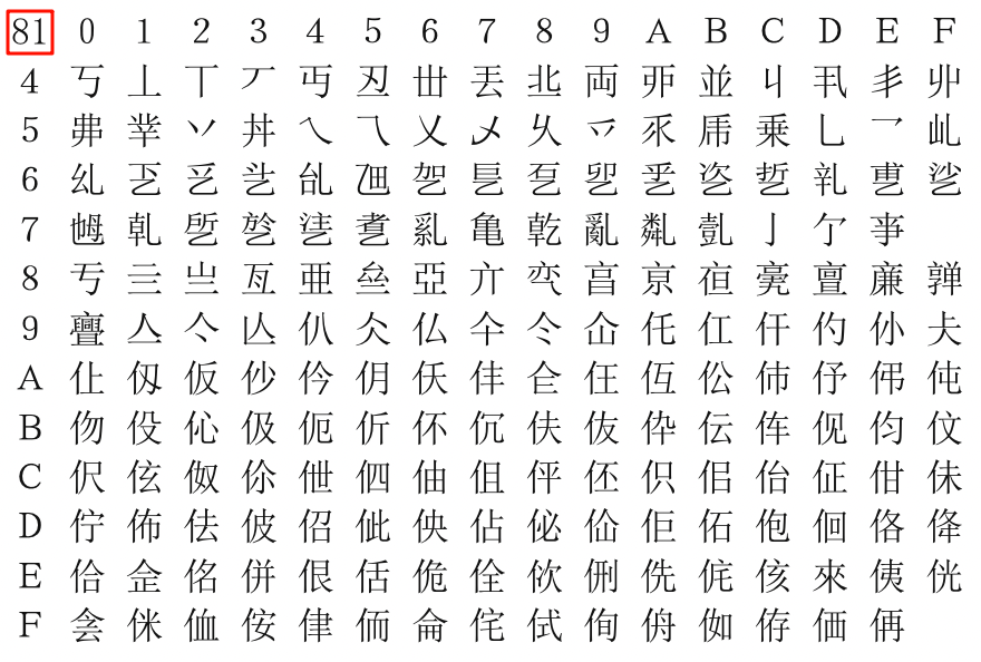 个),属于兼容范围GB2312 字符集使用分区管理: