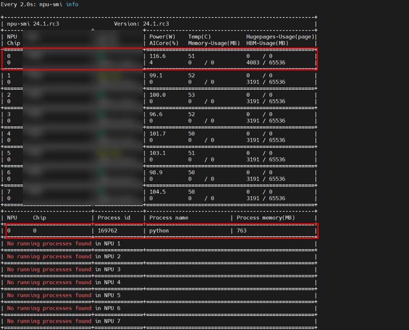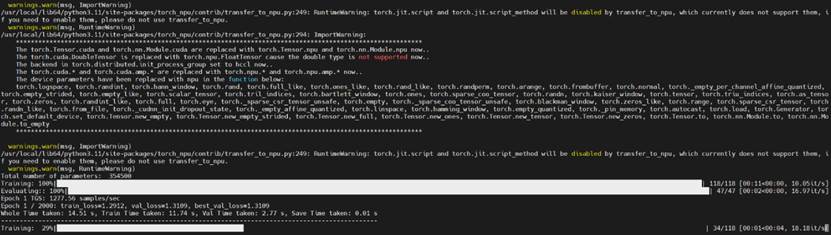 (注:源码中已经启用DDP的方式进行数据并行分布式训练,所以,如果想使用多卡训练,只需要设置环境变量ASCEND_RT_VISIBLE_DEVICES即可。例:使用前4卡,export ASCEND_RT_VISIBLE_DEVICES=0,1,2,3)