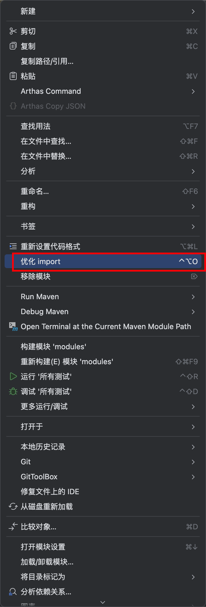选择任意IDEA项目下的任意包,右键