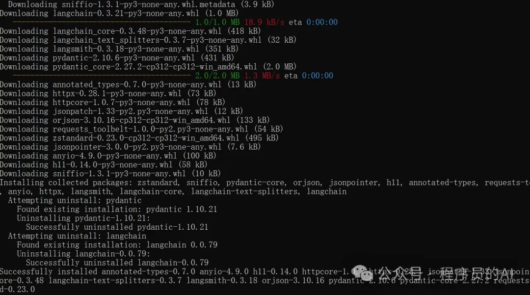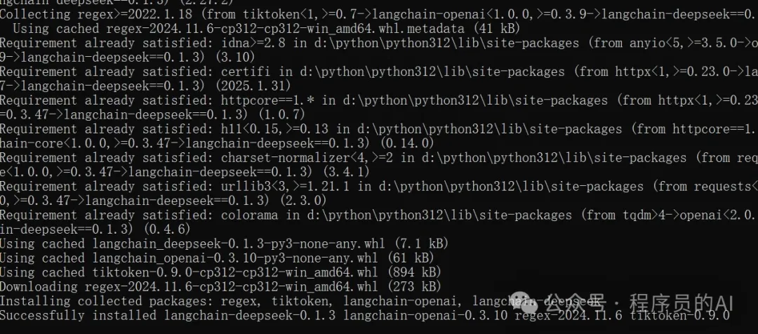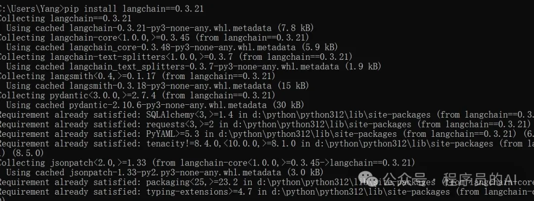 安装LangChain,langChain-core等库,我安装时LangChain版本是:0.3.21,langChain-core版本是当时最新版本:0.3.48。因为一些常用的大模型都遵循 OpenAI API 规范,还需要安装OPENAI相关库。如果使用国内的大模型也要安装相应的库如:DeepSeek库。如以下相关截图:
