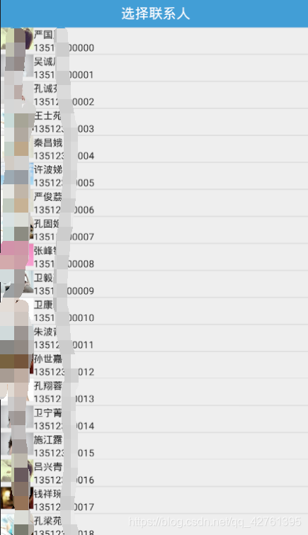 一般获取联系人名称,电话,头像利用LIstview来展示信息(效果如下)