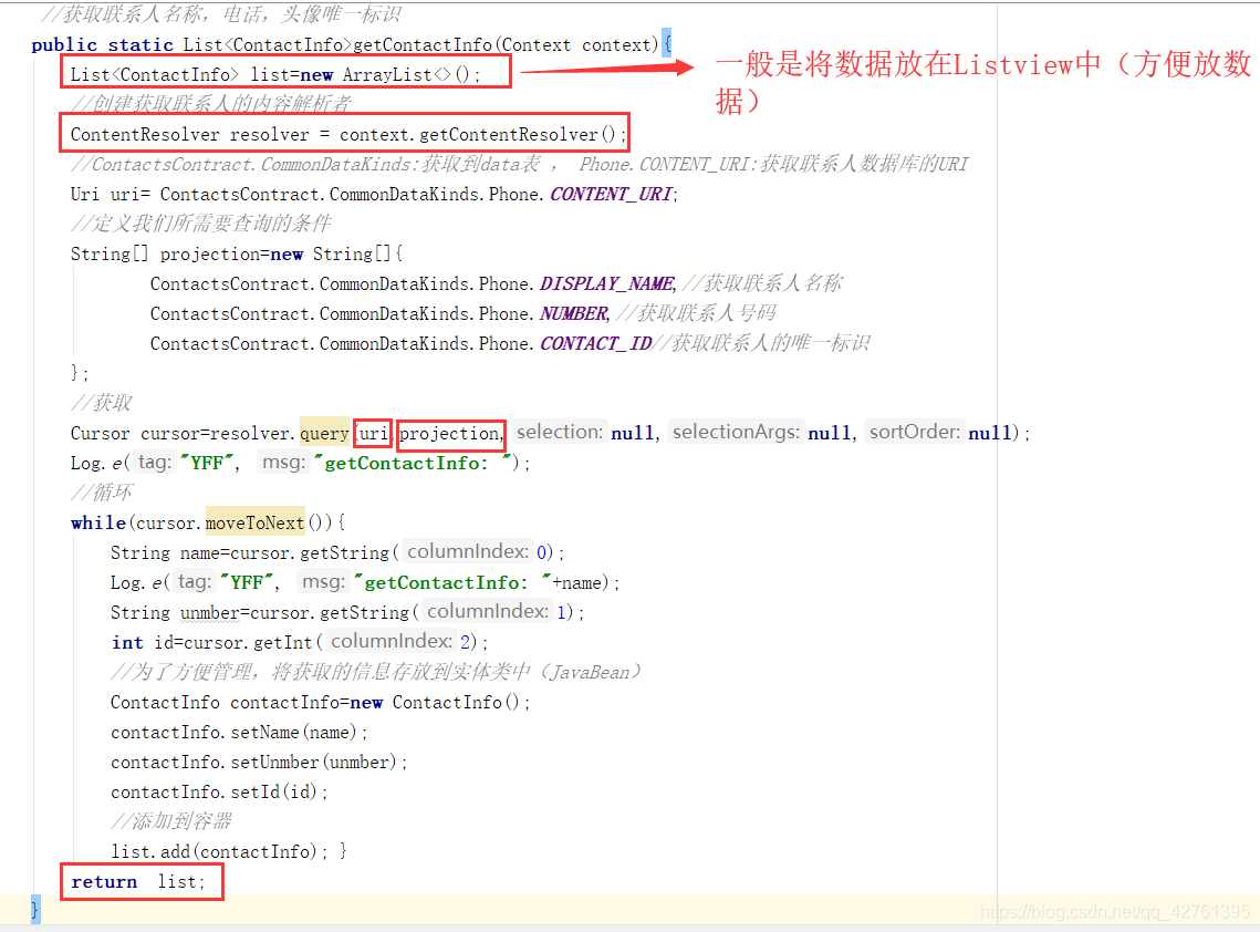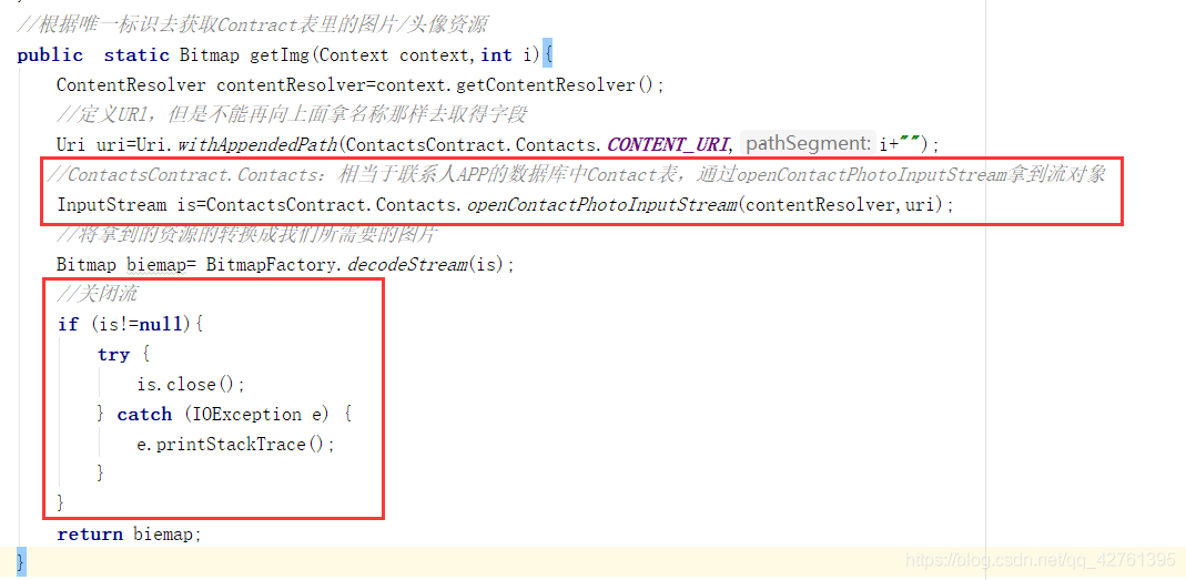 博主为了方便,将3.4点写成了一个工具类:GetContactInfoUtils(一个获取手机联系人名称,电话,头像的工具类)