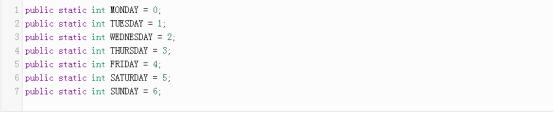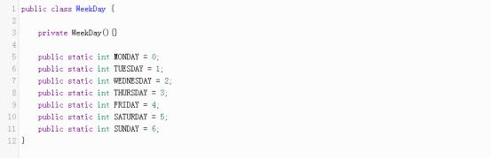 不再被迫记住constants类,如果有任何客户机要使用您的代码,他们不必怀疑Monday实际上是由0还是1表示的。