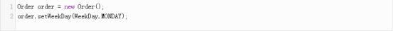 order.setWeekDay(1);和if(order.getWeekDay()==1)都会使编译器抛出一个错误,因为试图使用integerDay类型的变量,而它们应该是WeekDay类型。