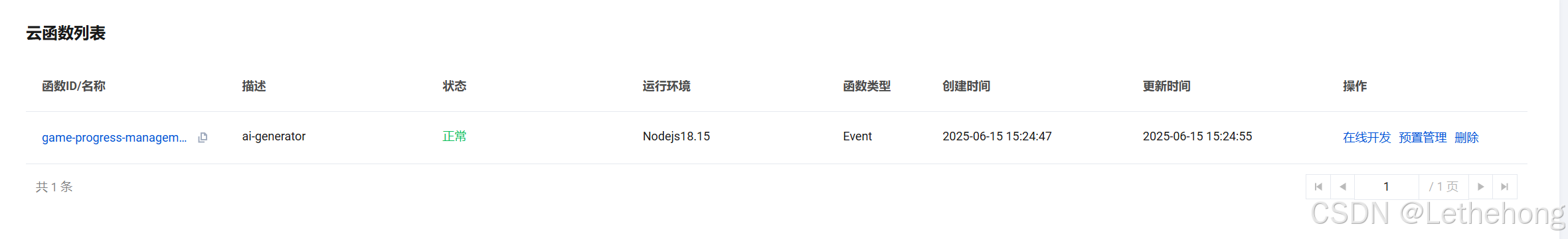 在对话完之后,点击发布,然后前往云函数查看,即可看到正在运行的云函数