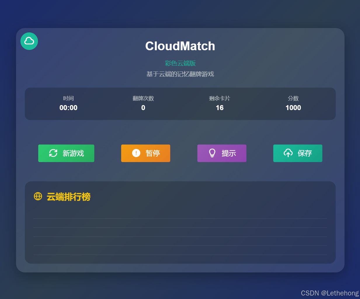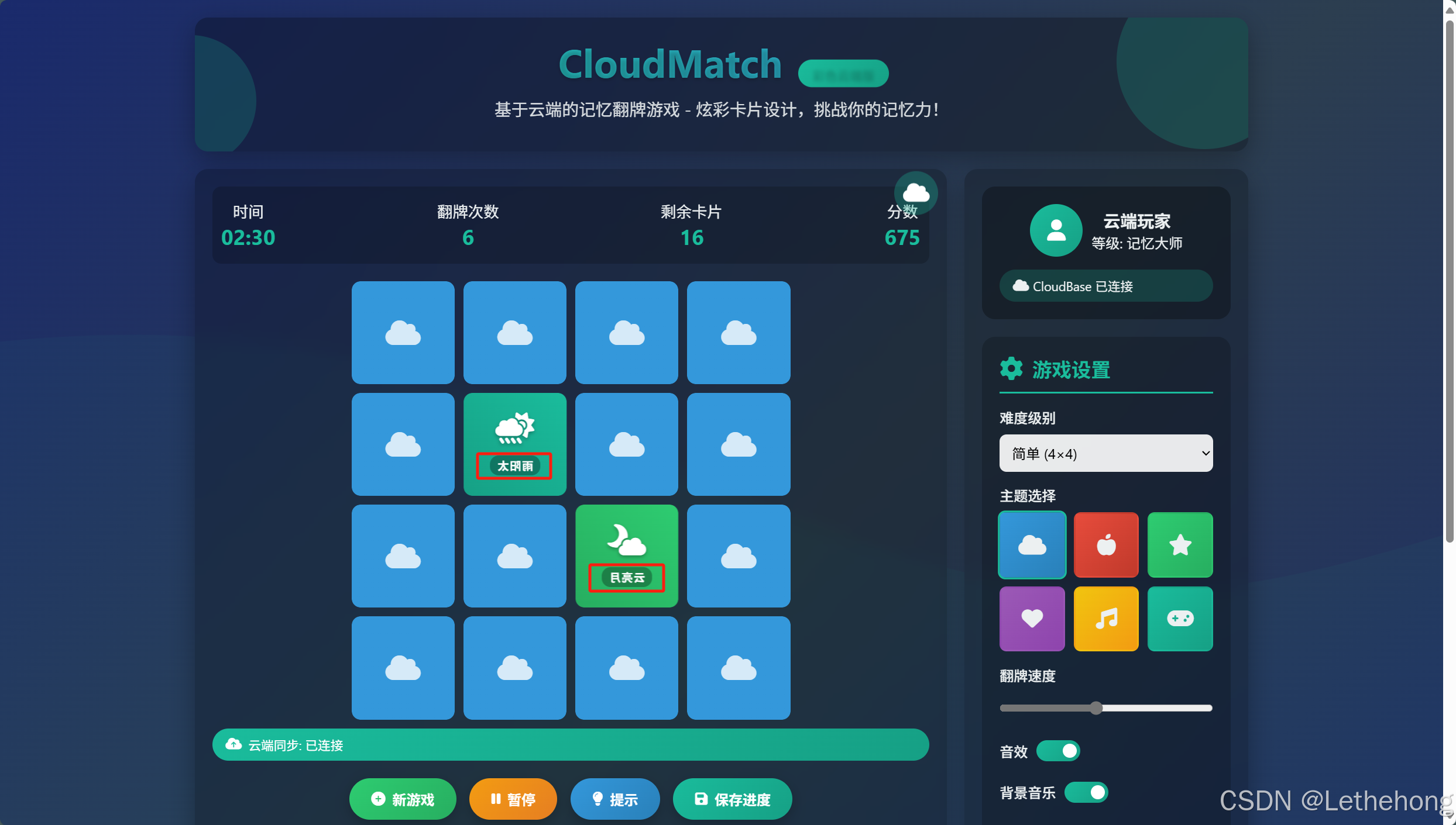 朋友们,今天介绍一个超级有趣的在线游戏——CloudMatch!这可不是普通的记忆翻牌游戏,它融合了云端技术和炫酷设计,玩起来特别过瘾。