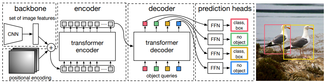 DETR将Transformer引入视觉领域,抛弃了传统的锚框与非极大值抑制(NMS),利用注意力机制实现全局建模。