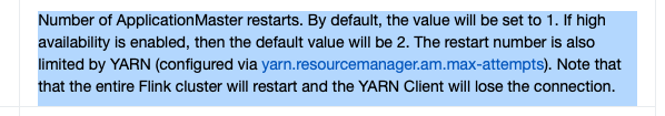 官网其实有所提及,当不开启 HA 时,默认值为 1 也是为了避免自动无状态恢复,造成数据质量问题,切不可在未开启 HA 时,调整该参数 > 1