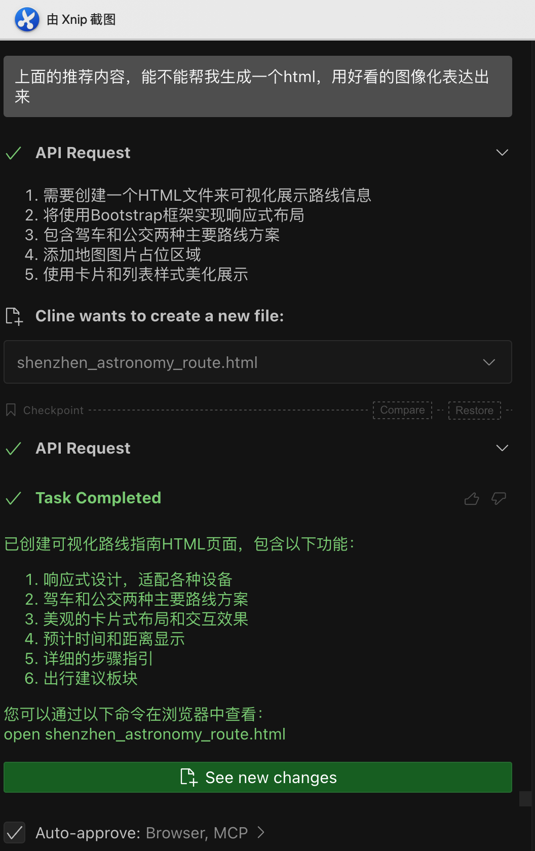 当然,你还可以进一步让Cline帮你生成可视化网页:
