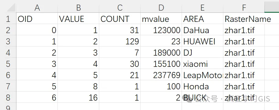 首先,明确一下本文的需求。现有按照文章ArcPy导出遥感影像属性表的方法中方法,从大量遥感影像中导出的栅格数据属性表,其均为.csv格式的表格文件。以其中一个.csv格式文件为例,其数据信息如下图所示。