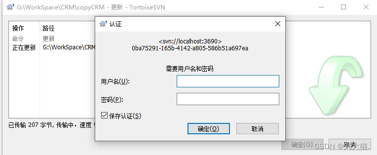 3,再次打开SVN,会要求输入username和password